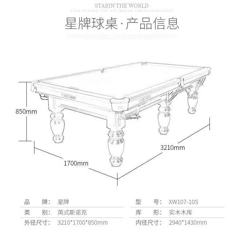 星牌 XW107-10S 小型英式斯諾克臺球桌