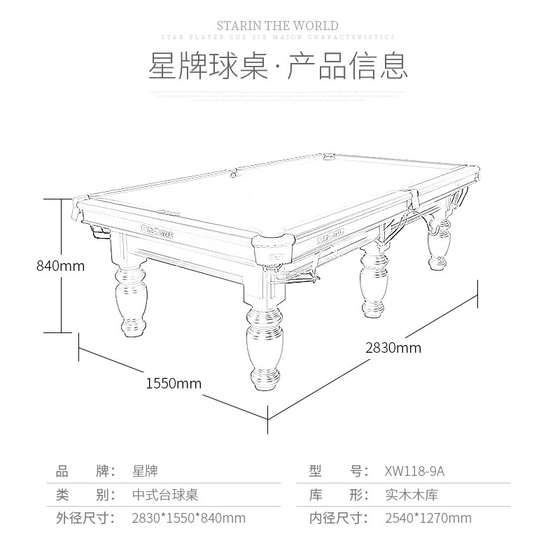 - 星牌 XW117-9A 美式臺(tái)球桌