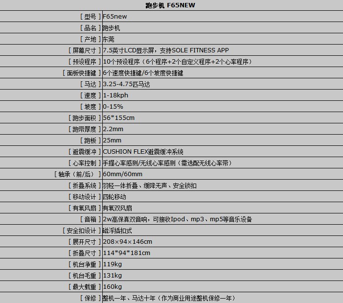 美國(guó)SOLE速爾 F65NEW跑步機(jī)