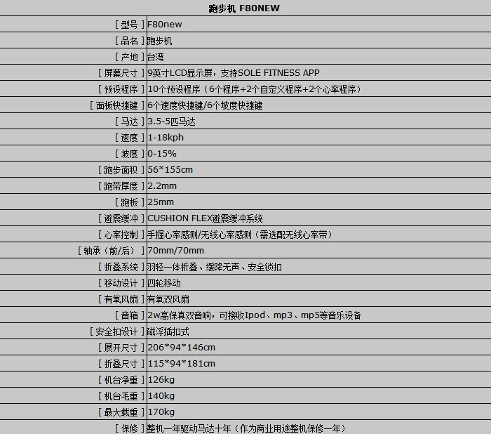 美國SOLE速爾 F80NEW商用跑步機(jī)