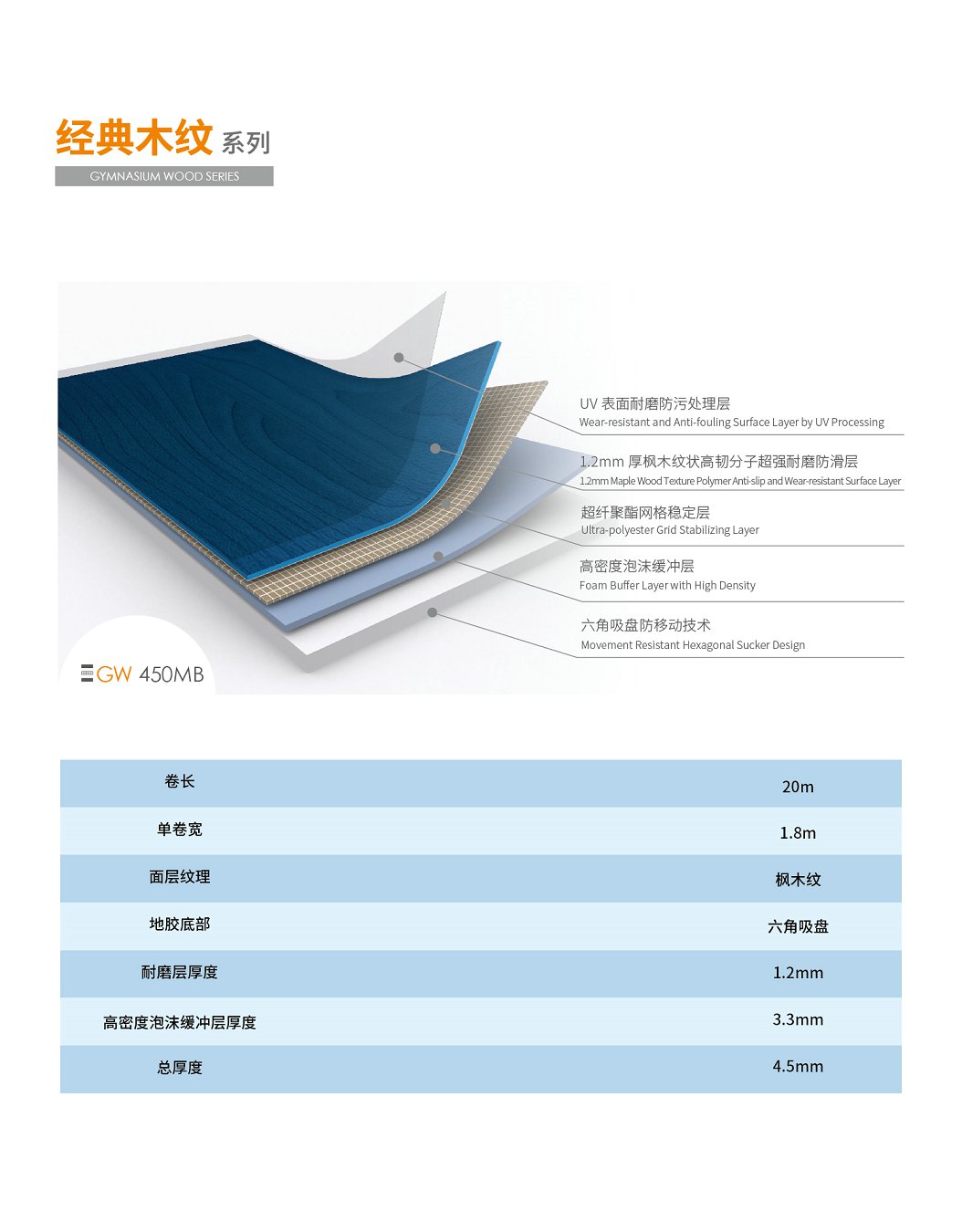 天速綜合地膠籃球場地膠經典木紋系列GW450MB楓木紋