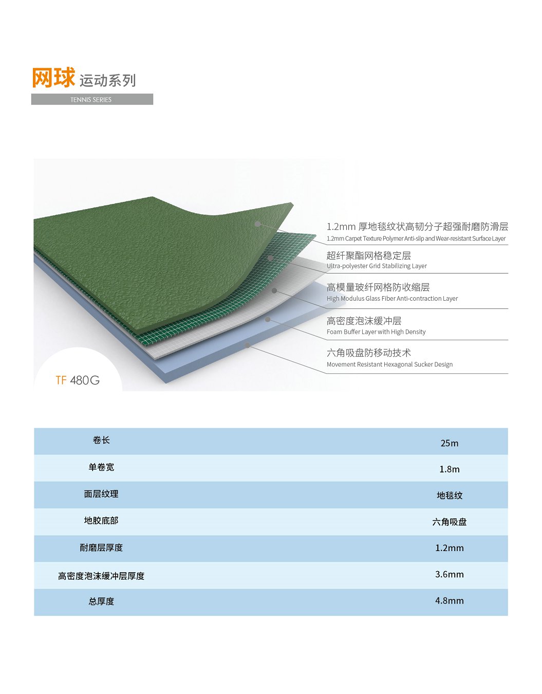 天速綜合地膠網球場地膠經典木紋系列TF 480G草地綠