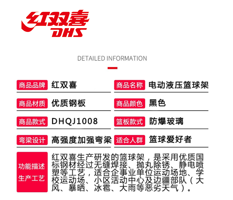 - 紅雙喜DHS 籃球架 自平衡籃球架DHQJ1014